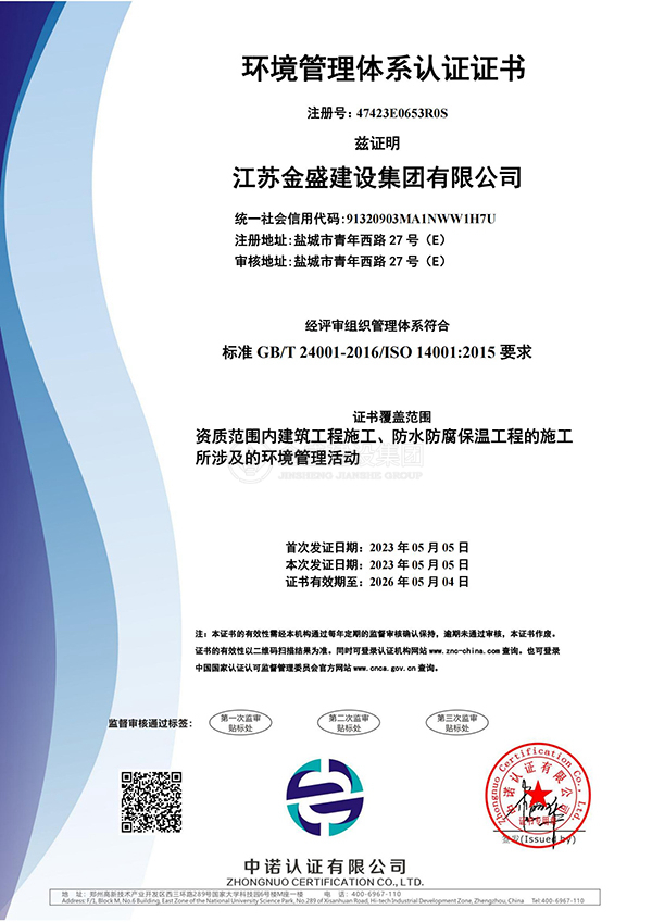 環(huán)境管理體系認(rèn)證證書